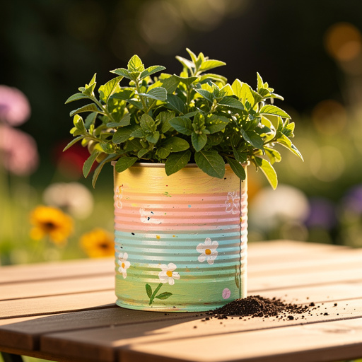Tin cans don't have drainage holes, so add a layer of small pebbles or gravel at the bottom before adding soil. This creates a reservoir for excess water, preventing root rot.