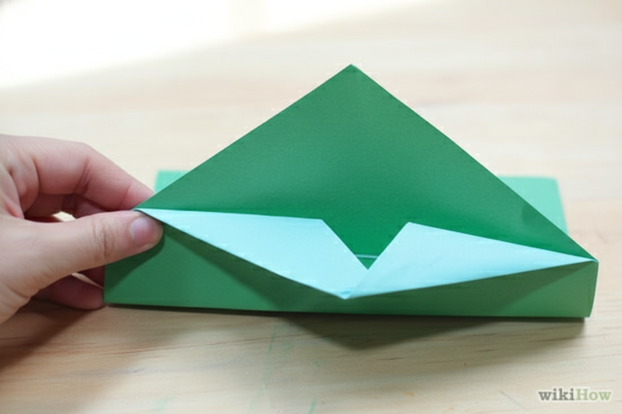 Along the folded edge, draw a mountain range profile with three to four peaks of different heights.