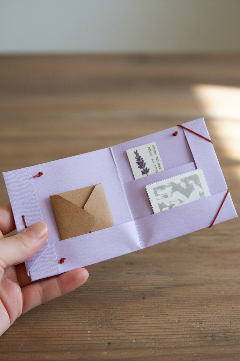 A small folded document folder with a flap closure, sized for receipts or notes.